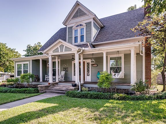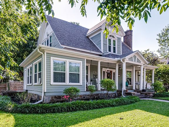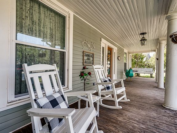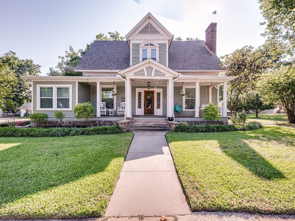 Set among mature oak and pecan trees in a sought-after location, this meticulously updated 1907 residence seamlessly combines timeless elegance with modern comfort. The home features original hardwood floors, a refined library-sitting room, separate living area, formal dining room and a sun-filled sunroom—each space offering distinctive warmth and character. With four spacious bedrooms, including a primary ensuite conveniently located downstairs and three additional large bedrooms plus a full bath upstairs, the layout provides both flexibility and privacy. A powder bath is ideally situated on the main level for guests. The kitchen overlooks the landscaped backyard and offers period-appropriate cabinetry, quality stainless steel appliances, a walkthrough utility area with access to the backyard, and an iconic walk-in pantry. Enjoy the gracious front porch, ideal for relaxing as community parades pass by. The expansive backyard invites various activities: enjoy your morning coffee or evening tea on the shaded deck, stroll through lush St. Augustine grass, garden, raise chickens, swim in the above-ground pool, or utilize the workshop in the detached three-car garage with an apartment above. This property provides quiet, private living with income potential from the separate living area, making it an exceptional opportunity for those seeking a blend of historic charm and contemporary convenience.