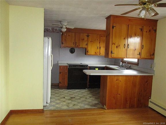 Ranch style home, living room with fireplace and hardwood flooring. Kitchen with dining area, two bedrooms, One bedroom has sliders to wood deck. One car garage and spacious backyard. wood Deck