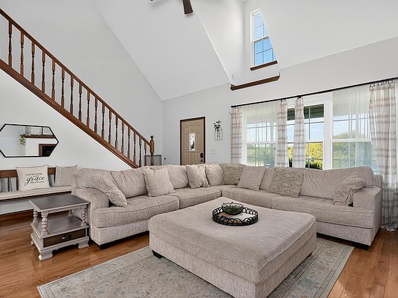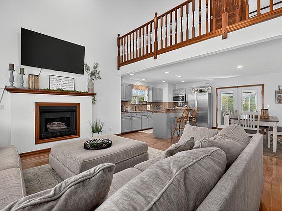 LAST STOP! This is the last home your family will need. Poised on a beautifully manicured lot this 4 BD 2 BA home has much to offer! Enjoy the rest of Fall and Winter with campfires with wood from your own 5 acres, or sledding on the sloped side yard, then relaxing in your own hot tub. Open the front door into the bright and open concept living room, straight into the dining room kitchen, or further into the sunroom. In the summer enjoy backyard BBQs on the back deck, leading straight into the above ground pool with level deck area. 2 bedrooms and one bath on the first floor. Walk upstairs to a spacious master bedroom with ensuite and walk in closet. There is a second bedroom as well as a landing area on the second floor. The oversized garage is attached via the basement of the home, and the garage gives access to the home into a basement family room. Minutes to the marina with enough parking for a boat, and a short drive to I-75 make this home ideal for rural living with access to the amenities of small town and big city life nearby. Currently operating as a STR. This home offers ample space for guests to rest and relax in the sunporch area or lounging around the pool.