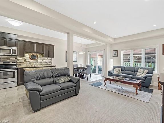 Welcome to this stunning Losani-built townhouse, offering a perfect blend of style, comfort, and convenience. The fabulous eat-in kitchen is a true showstopper, featuring custom cabinetry, soft-close drawers, granite countertops, stainless steel appliances, a movable granite island, and ceramic tile flooring. Step through the walk-out to a beautifully maintained backyard with a private patio - ideal for relaxing or entertaining. The open-concept living and dining area is bright and inviting, showcasing a large bay window, custom blinds, upgraded lighting, and a convenient 2-piece powder room. Upstairs, the upgraded oak staircase leads to three spacious bedrooms, including a serene primary retreat complete with Berber carpet, a walk-in closet with natural light, and a luxurious 4-piece ensuite. Enjoy the oversized subway tile shower, soaker tub, and ample storage. The additional bedrooms also feature Berber carpets and large closets, while the main 4-piece bath mirrors the elegant finishes of the ensuite. A convenient upper-level laundry room adds to the homes functionality. With an automatic garage, inside entry, and fantastic curb appeal, this home truly has it all. Don't miss your chance to make it yours!