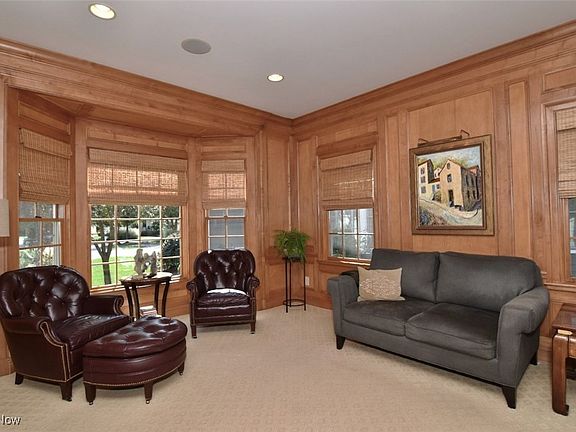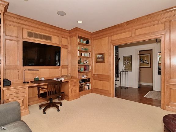 Discover luxury living at its finest in this stunning Falls Walk home-perfectly situated on a premier lot in one of the Village of Chagrin Falls’ most sought-after neighborhoods.A short, scenic stroll leads you to the heart of the Village—where you’ll enjoy boutique shopping, restaurants, bakeries, beautiful parks,top-rated schools & the iconic falls. This home captivates with timeless curb appeal, a gracious front porch & meticulously crafted details. Gleaming hardwood floors, extensive custom millwork & elegant finishes. Welcoming foyer opens to richly paneled library/home office w/ built-in shelving & desk. Inviting living room boasts a coffered ceiling & warm fireplace-perfect for relaxed evenings. Open-concept kitchen & dining room are a showstopper, featuring high-end white cabinetry, granite countertops, stainless steel appliances, stylish tile backsplash & large center island that invites gathering.Step onto a raised deck or into the luxurious screened-in porch—complete w/ a second fireplace—ideal for enjoying crisp autumn evenings or summer entertaining. First-floor private primary suite w/dual walk-in closets, direct access to screened porch & spa-like marble bathroom w/ dual vanities, soaking tub, walk-in tiled shower & dedicated makeup area. Addtl 1st flr amenities incl powder room, mudroom w/attached two-car garage & laundry room.Upstairs, a large open loft provides flexible living space, perfect for a playroom, second office, or media area. 2 spacious bedrooms share a hall bath w/ granite counters and double-sink vanity. Expansive, walk-out lower level is designed for ultimate entertaining & relaxation—featuring walls of windows, custom beamed ceilings, a large family room with built-in bar, a home gym, game room, half bath & an impressive golf simulator room. Step outside to a huge covered patio—an entertainer’s dream for al fresco dining and gatherings—overlooking 11 acres of tranquil green space, complete with walking trails and a peaceful pond.