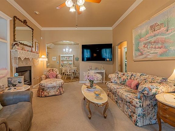 Upon entry, you'll fall head over heels in love with this CHARMER! The living area boasts a SOARING 10’ ceiling, elegant crown molding, and a cozy gas fireplace that adds warmth and charm to both everyday living and special occasions.