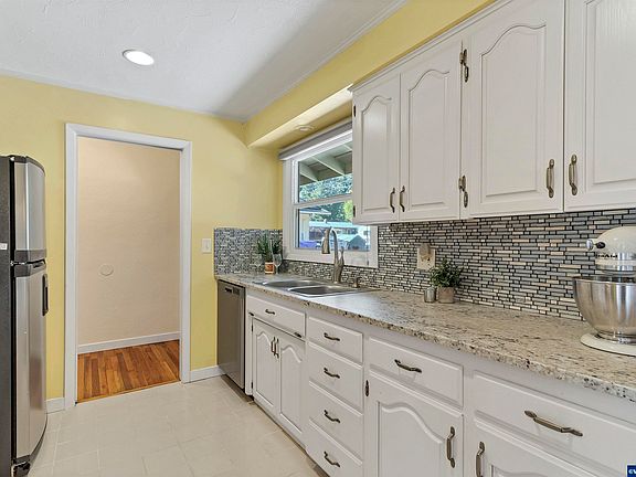 Welcome home to this charming cottage in SE Salem. Great layout maximizes the square footage so it feels bigger than it is. So much natural light, huge wood-burning fireplace feature, & original wood floors really warm up the space. All stainless steel kitchen appliances included. 3 full bedrooms and separate laundry room. Newer vinyl windows. New sewer line. Large, fully-fenced backyard w/raised beds, shed and oversized garage to boot! Home sits at the end of the lane which enhances privacy.