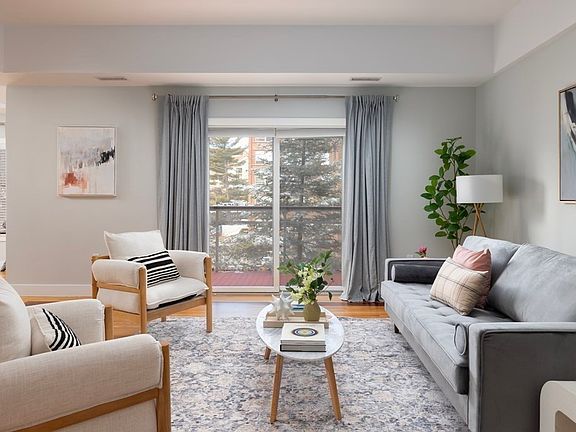 Enjoy the ultimate urban luxury lifestyle in this spectacular modern southwest-facing corner unit with two garage parking spaces in one of Brookline's most desirable boutique elevator buildings. This expansive, beautifully appointed two bedroom, two and half bathroom unit offers 2,092 sq ft of living space with a fabulous open floor plan, walls of windows, and two generous private terraces that give the property a dynamic indoor / outdoor feel. Anchored by a granite-topped breakfast bar, the contemporary kitchen is outfitted with double ovens and an induction cooktop. The sumptuous primary suite boasts a 27’ bedroom, an enviable walk-in closet, and an elegant modern bath. The spacious second bedroom is also ensuite. Central air, in-unit washer-dryer, central vacuum, private storage, guest parking, and a common courtyard and exercise room. Outstanding location steps to world-class shopping, dining & Wegman's, Near the Green Line T w/ easy access to downtown, Longwood. Brookline schools.