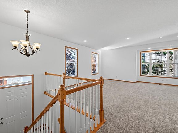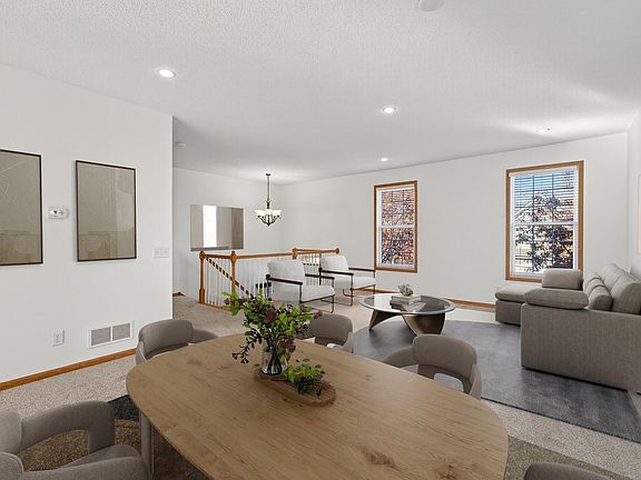 Discover this stunning end-unit townhome in the highly desirable Village of Circle Pines. Offering 4 bedrooms and 4 bathrooms, this is the largest floorplan built in the community and you’ll feel the extra space in every room. Step into a warm and welcoming foyer that opens to the main level. With windows on three sides, natural light fills the home throughout the day. The spacious living room accommodates multiple seating arrangements, while the large eat-in kitchen—with center island—is the perfect spot for morning coffee or preparing your favorite meals. The adjacent dining room can easily flex into a cozy family room, complete with a fireplace for added comfort. Upstairs you’ll find three generous bedrooms and two full baths, including a lovely primary suite with a private bath, walk-in closet, and a second fireplace—ideal for quiet reading or relaxing evenings. The lower level begins with an oversized 2-car garage offering excellent storage. Inside, the mudroom and laundry room sit conveniently off the garage entry. The sizable 4th bedroom includes its own en-suite bath, making it perfect for guests, a home office, a workout area, or an additional family room. Storage space are abundant throughout. End-units with this much space are truly rare. Come experience everything this wonderful community has to offer!