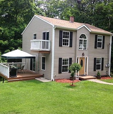 Open and modern contemporary colonial featuring open floor plan, cathedral ceilings, hardwoods, 1st floor laundry, new granite kitchen as of 4/2014,. Master suite offering balcony, bath, walk in closet. located on 0.82 acres 1 mile from town center. This home was rebuilt from the first floor up with a second floor addition in 2004/2005. with all new plumbing and electric and wired for a generator.This home also comes with a pellet stove located on the first floor.This home speaks for itself and shows beautifully! ENTRANCE TO BASEMENT IS OUTSIDE BELOW DECK USDA PROPERTY ELIGIBLE (100% FINANCING OPTION)