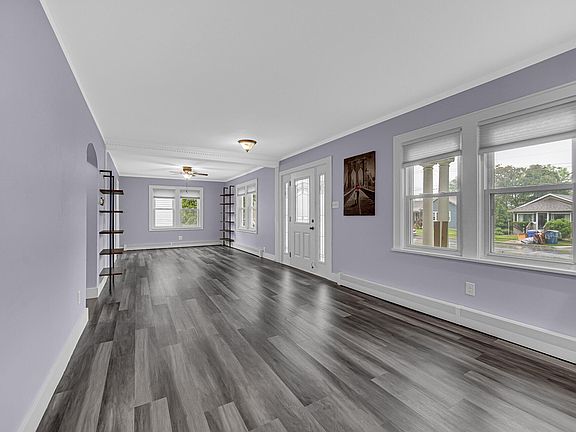 Welcome to this beautiful home, beginning with a charming covered porch that sets the tone for what's inside. Step into a thoughtfully designed open concept layout featuring new laminate flooring, fresh trim, updated tile, and crisp baseboards throughout. The remodeled kitchen and bathroom showcase modern finishes and functionality, while newer windows, roof, and a tankless water heater provide comfort and efficiency. The partially finished basement includes a dedicated laundry area and plenty of added storage. This home also features updated plumbing and electrical systems, along with a backup sump pump for added peach of mind. Outside, a 4 car garage offers ample space, complete with heat and ideal for a workshop, hobbies or extra storage. With thoughtful upgrades inside and out, this move-in ready home is truly a standout.
