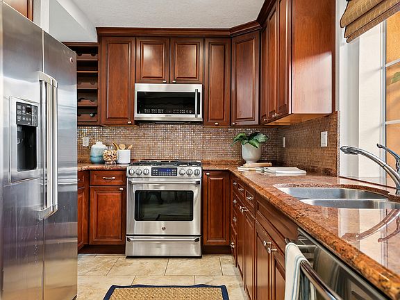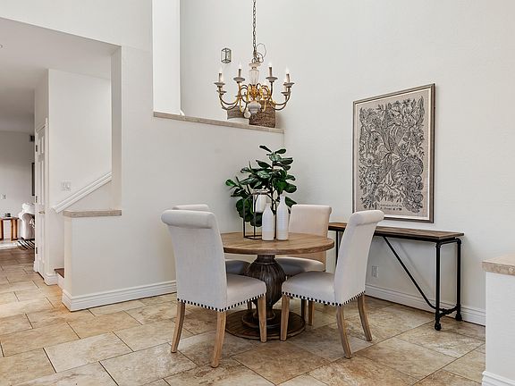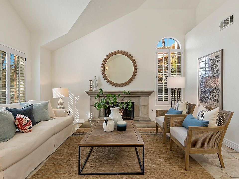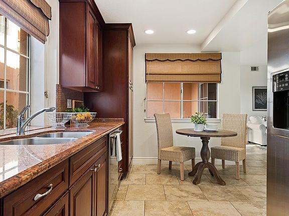 Spacious Elegance with Mountain Views! Up the path through lush landscaping, enter the bright living and dining area with tiled floors, cathedral ceilings and cozy fireplace. The cheery kitchen has granite counters, wood cabinetry, stainless appliances and convenient pass-through. Read, watch TV or employ The Queen's Gambit in the adjacent family or den area. The Saltillo-tiled open patio is perfect for barbequing steak, eggplant, or tofu, and entertaining friends! The upstairs main bedroom boasts a tiled en suite bathroom, walk-in closet, and crisp mountain views. The community pool and spa and are a welcome option for distanced outdoor activities. Close to shopping, restaurants, bus, hospital, bike path, parks and a short jaunt to the beach, come fall in love with the lifestyle!