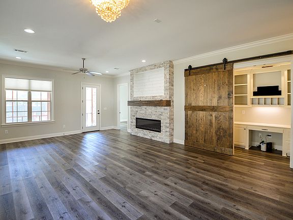 Located in the highly desirable Carpenter Place Subdivision, this well-maintained 3-bedroom, 2-bath brick home offers charm, comfort, and modern elegance throughout one of the best floor plans in the neighborhood. Built in 2018, this home features an open layout and light, neutral paint colors that make the space bright and inviting. The kitchen includes granite countertops, stainless steel appliances, and abundant cabinet space, with a layout that flows perfectly into the living area. The primary suite offers a luxurious en-suite bath with double vanities, a soaking tub, separate shower, and an extra-large walk-in closet complete with built-in shelving and storage organization—providing plenty of space to keep everything neatly arranged. A versatile office nook with built-in desk and cabinetry offers the perfect spot for working from home, studying, or managing daily tasks, and can easily be closed off from the main living area for added privacy and focus. Step outside to your own private backyard retreat, designed to blend comfort, beauty, and tranquility. A beautifully crafted wooden gazebo accented with charming red bridge details overlooks a tranquil koi pond, creating the perfect setting for morning coffee, quiet reflection, or entertaining guests. The gazebo provides a shaded space for dining or relaxing while enjoying the peaceful sound of flowing water and views of vibrant, colorful fish gliding below. Whether hosting a weekend gathering, enjoying an evening under the lights, or simply finding a moment of calm after a long day, this backyard is truly a one-of-a-kind escape.