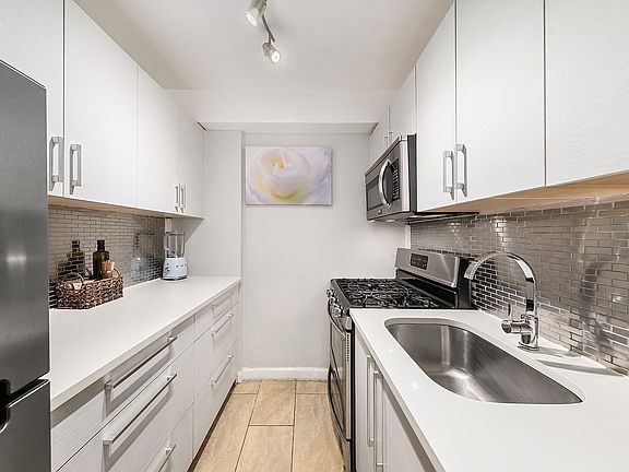 This spacious, sunny alcove studio in Murray Hill welcomes you with large east-facing, soundproof windows that fill the space with natural light. The expansive living and dining room create an inviting atmosphere, perfect for both relaxation and entertaining. The modern kitchen, complete with stainless steel appliances, is ideal for culinary pursuits, while generous closet space, including four large closets throughout, ensures plenty of storage.