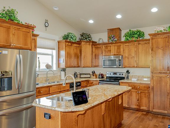Welcome Home! Located in a desired neighborhood, this property boasts a beautifully landscaped yard that offers privacy & tranquility, a built-in Traeger perfect for entertaining guests, & a covered back porch w/ recessed lighting. The lrg kitchen w/ its island & SS appliances will make cooking a breeze. You'll love the open floor plan, vaulted ceilings, spacious bedrooms & all the storage! A generator for your peace of mind, ensuring that you'll never be without power, as well as RV parking! Don't wait!
