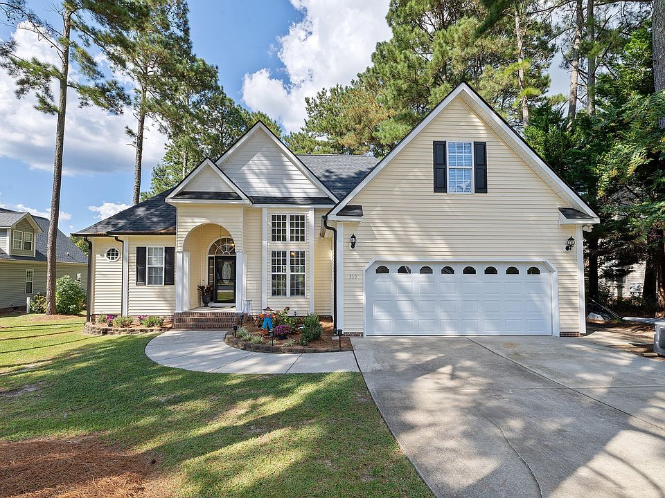 Welcome to this stunning two-story home in Mamie Belle Ridge, set on a beautiful one-acre lot! A grand arched entryway invites you into a bright, open floor plan with hardwood floors and LVP run throughout. The spacious living room features vaulted ceilings and a cozy fireplace. The stylish kitchen boasts stainless steel appliances, abundant cabinet and counter space, and a layout perfect for cooking and entertaining. The first-floor primary suite offers tray ceilings and a luxurious ensuite bathroom with dual vanities, a soaking tub, and a walk-in shower. Two additional bedrooms and a convenient laundry room complete the main floor. Upstairs, a huge bonus room offers endless possibilities—media room, hobby space, or even a fourth bedroom. Outside, the large deck overlooks a private backyard oasis with a fire pit, hammock-ready trees, and a serene pond view. Conveniently located near Campbell University and Fort Liberty, this home blends comfort, style, and nature!