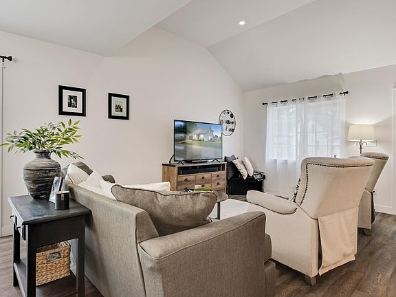 The main level offers a spacious open-concept living and dining area with vaulted ceilings, a large kitchen with a breakfast bar and modern appliances, one bedroom, a full bathroom, and a combined laundry/pantry room. Upstairs, you’ll find a charming family/bonus area, a second bedroom, and a generous owner’s suite featuring vaulted ceilings, a walk-in closet, and a private full bath.