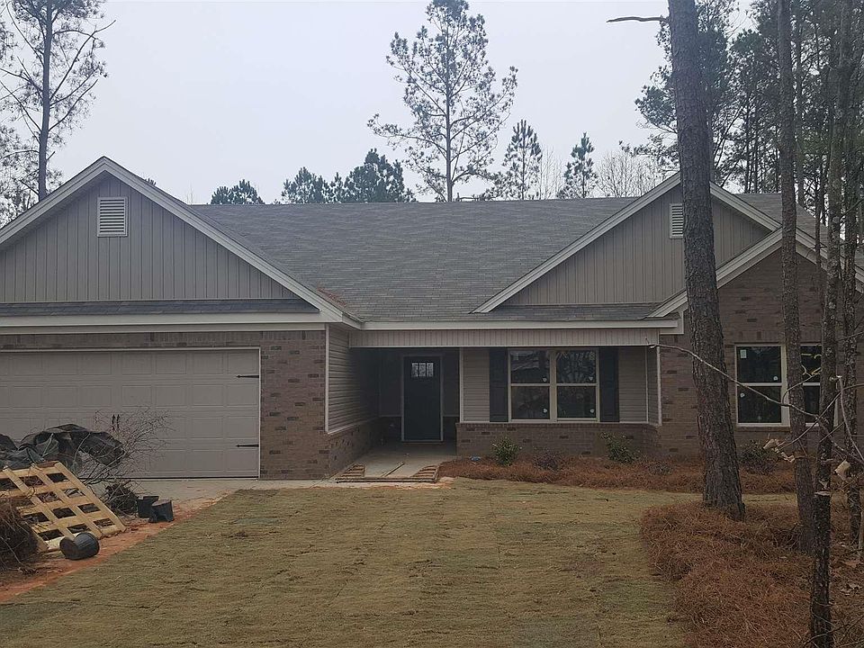 Craftsman style ranch, 4 bedroom, 2 bath, located on a 1+ acre lot , custom stained kitchen cabinets, breakfast bar,pantry, stove, microwave and dishwasher included, separate dining area with trim package, open greatroom with wood burning fireplace, walk in closets, master suite has trey ceiling, master bath has garden tub, separate shower and double vanity, 2 car garage, patio, warranty, home qualifies for 100% usda financing, seller will contribute up to $4000 towards closing cost with use of a preferred lender only. Photos are of the home plan being constructed, not of the actual subject property. Features may vary, The Mantle Plan
