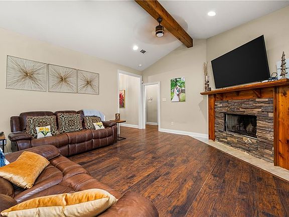 Open floor planGenerous yardGranite countertopsStainless-steel appliancesReal wood cabinetryLarge master bedroomWood-burning fireplace