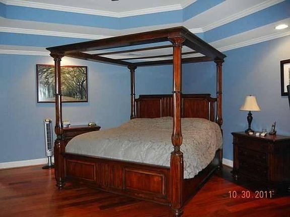 5 year old custom built home on large level lot. Beautiful Brazilian cherry hardwood floors through all living areas and bedrooms. Ceramic tile baths and laundry. 9ft and decorative ceilings. Greatroom featured coffered ceilings and corner gas log fireplace. Formal dining with wainscoting and unique ceiling detail. Home office with built-in desk. Sunroom(or playroom/exercise room) also on main level. Large bedrooms and great closet space. Kitchen with granite tops, island, huge walk in pantry, hardwoods and stained cabinets. Master suite with double, octagonal trey ceiling, bath with jetted tub, double vanity with granite, separate shower and large walk in closet. privacy fenced yard. Oversized garage with room for storage. Roof replaced in 2012. Two water heaters. many upgrades.