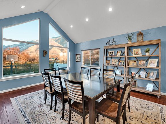 Enjoy stunning Maple Mountain views from this updated Mapleton rambler. The remodeled gourmet kitchen features high-end appliances and a functional layout ideal for everyday use. Open living and dining areas offer vaulted ceilings and large windows that capture the mountain scenery. The fully fenced backyard backs open fields, providing privacy and unobstructed views. An oversized laundry/craft room adds versatility and convenience. The huge master bedroom features a large walk-in closet, creating a private retreat. Additional highlights include RV parking, engineered hardwood floors, granite countertops, and large cold storage. A well-designed home with upgrades and views that are hard to find.