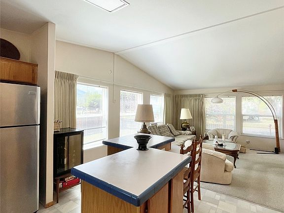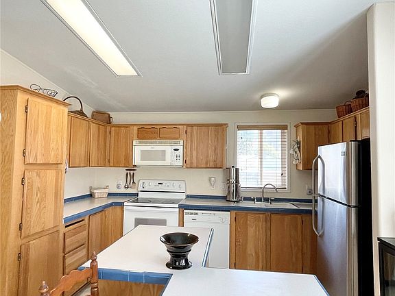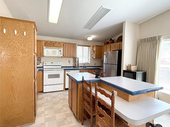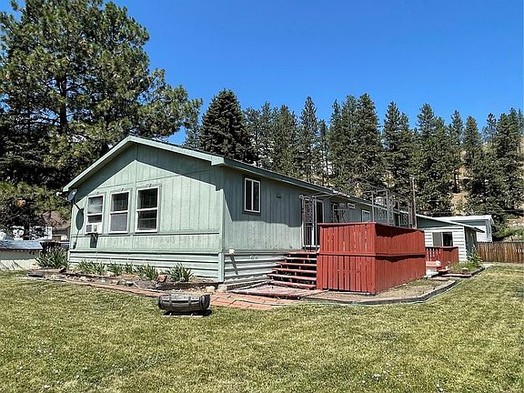 Conconully - Nestled between Upper and Lower Lakes - Close to restaurants, market, fuel, and FUN. MHome features 4 bedrooms/2 bathrooms, primary bedroom includes bathroom with both shower and tub plus double sinks and walk-in closet, living room with numerous picture windows, kitchen with tile island with breakfast bar and all appliances staying, dining room with slider out to multi-level, large deck, and laundry room with utility sink. Property is completely fenced. Located on the property is an accessory unit with one bedroom, full bathroom, kitchen and living room area. Detached garage/shop and 2 car carport. There are 2 RV Hook-ups with power, sewer, and water with drive thru capability. Garden space. $359,900 H-3163/MLS2133857