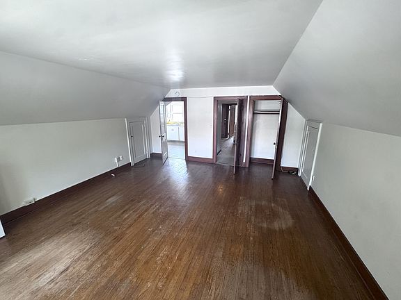 Attic unitHardwood floorsStately apartment houseLarge kitchenDining area