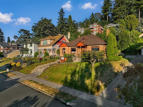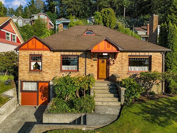 1931 home with a Bay View! Forest St in the iconic, highly desirable South Hill neighborhood! With solid oak bedroom floorings and leaded glass windows throughout. The kitchen has a breakfast nook with a partial stunning Bay view, built-in corner glass-fronted display cabinet, character ceiling fan and built-in ironing board. Note the beautiful glass door knobs, the built-in kitchen spice, canned, and pie cabinets along with the built-in phone shelf and incredible transition arches. Fireplace in the front room! Views from the living and dining rooms! And you gotta love the original brick exterior. The big, elevated backyard could possibly host an ADU with another killer view (and maybe an entrance from Garden St.?)