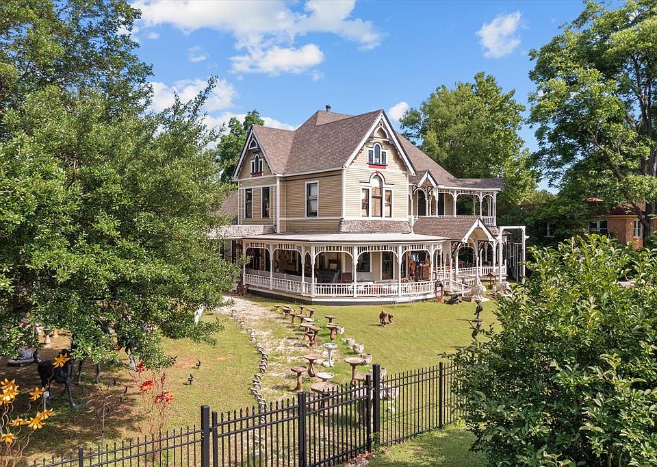 Own a piece of Nacogdoches history with this stunning 1897 Diedrich Rulfs-designed Victorian in the Washington Square Historic District. The 6,400+ SF main home offers 5 bedrooms, 4 bathrooms, intricate woodwork, original architectural details, and 2-level wraparound porches. A 2020-built 2 bed, 2 bath carriage house includes a lift, sunroom, and full kitchen—ideal for guests, owner residence or rental income. Situated on 1.8 fenced acres with a 6,000+ SF metal workshop with 8 garage doors, storage shed, and treehouse. Zoned commercial/residential, this rare property is perfect for a private residence, event venue, retail, restaurant, B&B or mixed-use space. Parking for 30+ vehicles. Just blocks from SFA, downtown, and medical centers. This is more than just a historic home—it's a unique opportunity to own a piece of Nacogdoches history while building a thriving business or investment property. Call to schedule your showing today!