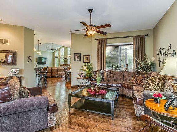 This home shows pride of ownership. Split bedroom plan with a master suite to love! Master bedroom is quite large w/ coffered ceiling, 2 walk in closets, large linen closet and newly remodeled bathroom. Bath has tile flooring, granite counter tops with 2 sinks, walk in all tiled shower with bench in bath. Separate room with space for linens and toilet. Wood flooring throughout living room, heath room, dining room & hall. Granite counter tops, remodeled cabinets in kitchen, pantry & eating bar which opens up to the gorgeous hearth room with cathedral windows surrounding stone fire place, living & dining room have wood flooring, large windows (all windows have wood blinds) with a very open floor plan. Add 1 more bedroom, full bath and laundry to complete the gorgeous main floor. Basement has view-out windows, new carpet, wetbar, fireplace, built in bookcases, 2 bedrooms with walk in closets & full bath. Backyard is like living on a paradise island! Inground pool, stone fireplace, with patio areas surrounding the pool. Succulent landscaping with pond/waterfall area. This home won't last! Call today!