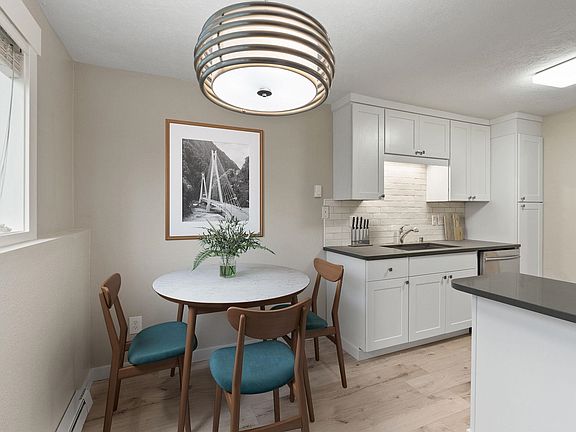 Updated ground level and end unit condo in University Gardens. New LVP flooring throughout, stone counters, modern white cabinets and stainless appliances. Informal dining area. Living room opens to yard. Shared laundry & storage. Assigned covered parking spot. Monthly H.O.A. includes water, sewer, garbage, and landscape maintenance. This is an affordable, turn key option in the Spokane Valley conveniently located close to shopping, dining, parks & entertainment.