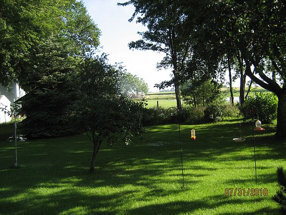 Energy efficient, easily accessible, near swimming pool, baseball & football fields, on the edge of town. Large relaxing deck 12' X 32' with large beautiful backyard with mature trees fenced for pets and children. Finished basement with brick wood burning fireplace. 11 rooms. Appliances included with Central Vac available. A single owner home. Oversized garage and spacious rooms. Smoke free and pet free interior. Large garden or wild flower area in back yard.