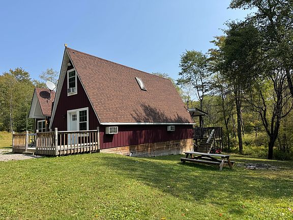 A true recreational paradise with income potential in the heart of the Allegheny National Forest. The private lane leads back past the fenced in house keepers maintenance shed as it goes through an aspen forest making one feel like they are in a Western setting. The large A frame cabin sets over looking the small stream with four bedrooms and two baths. This cabin does not spare any attention.. to rustic detail with large windows and open space design. The master bath and bed give a private setting near the back deck, which boost a slab wood bar and cooking area covered as well as a non covered dining area. The steps lead down to the fire pit and charcoal grill for nights eating s'mores. The property features two septic systems one which could be used for a bathhouse for the 8 camping locations that have water and electric. These locations set in giant hardwoods with a setting very rarely seen on private land. The large hard maple provide breath taking colors as crisp fall days set in. The gravel road leads to the charming rustic modern cabin with large windows looking through the forest into the National Forest. It has one bed and bath for a tranquil and very unique setting with a deck and fire pit area that can't be described with words. The trail system leads along the property boundary to the pond and clearing that could be another great cabin location as wood ducks fly in to roost in the evenings. The entire Western boundary borders the National Forest and the Northern boundary borders the rails to trail that is well known for biking and walking. The endless recreation continues with the Rocket John trail being 1/2 mile away for atv riding as well as within 5 miles two other atv trail heads. The Kelly Pines equestrian area is also within riding distance for horse enthusiast. Blue Jay creek which one of the springs that start on the property is a well known fishing stream and flows into Tionesta creek a few miles down the road which is a state stocked and floatable creek. Great rock climbing exist just a mile down Blue Jay road as well as many other climbing locations within a short drive. The Kinzua dam area and boating is also within distance to enjoy all types of recreation including world renown Jakes Rocks mountain bike trial system and Rim Rock recreation area. This is a must see property to understand what all it offers, call today for a showing.