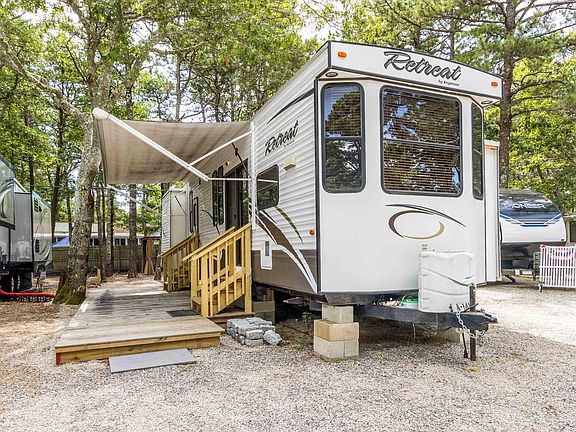 This 2013 Keystone Retreat unit has just undergone some wonderful updates and improvements! Offering approximately 400 sf with laundry, this 1 bedroom (king size bed) is perfect for an affordable Cape Cod getaway! Improvements include all new flooring, new paint, new large deck and stairs, re-sealed roof and flashing. A nicely sized backyard with newer gazebo and firepit is the perfect place to end the day after beach and pool time. Enjoy the park pool, children play area, and new dog run area. This is a SEASONAL park open from May 1-October 31. Current park fee for this site is $7,956. The fee includes lease of land, sewer, water, taxes, daily trash pick-up, amenities & on site management. All transactions in the park are cash and bill of sale (no financing available). All sales are subject to park approval of the buyer via a submitted application upon acceptance of an offer. Buyers to contact park personnel with any park specific questions.