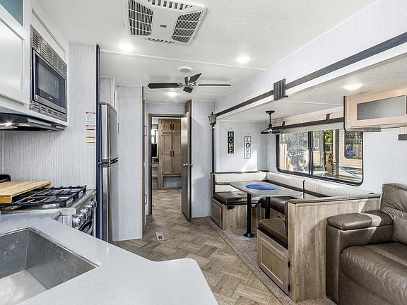 Looking for an affordable Cape Cod getaway? This absolutely pristine 2021 Destination RV at the Old Chatham Road RV Resort Park is perfect! Offering a primary bedroom with a king size bed and second bedroom with bunks and queen foldout bed, this trailer can handle a crowd. Guess what else this trailer has that you won't find in others - a second half bath! Outdoor entertaining is so much easier with direct access to the guest half bath. An affordable vacation 'home' is yours for the taking! Enjoy the park pool, children's play area, recreational fields, dog run area and wonderful sense of community. This is a seasonal park open from May 1-October31. Current 2025 lease fee for the site is $7954. All sales in the park must be cash. This is a bill of sale transaction. All buyers are required to submit an application to the park for approval.
