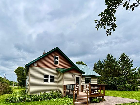 By no fault of the sellers, this charming home is back available! This 3 bedroom, 1 bath home sits on a private and peaceful .97 acre lot, on a quiet dead end road in the village of Frederic. Offering single level living floor plan with new windows throughout the entirety of the home, filling every space with natural light. Main floor bedroom and two large bedrooms upstairs, along with a non conforming bedroom or space to make your own. The upstairs is a blank canvas that would welcome your personal touch. This home has a new roof, siding, hot water heater, furnace, and newly renovated basement structure with underpinning, insulation, and sump pump making it an energy efficient house. One car garage with an attached bright and inviting insulated and heated workshop.