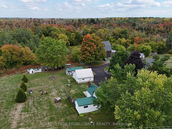 Nestled on the scenic and sought-after Old Madoc Road, just north of Belleville, this beautifully updated 2-bedroom, 1-bathroom home offers the perfect blend of peaceful rural living and unbeatable access to modern conveniences. Enjoy quick connections to Highway 401 for easy commuting, while being surrounded by the tranquility of nature trails, trees, and fresh air await right outside your door.Set on an expansive 1.3-acre lot, this one-and-a-half storey home has been tastefully renovated throughout, combining timeless charm with modern comfort. The main living areas are spacious and bright, with thoughtful updates that make this home truly move-in ready.Low-maintenance features include a durable metal roof and vinyl siding, giving you peace of mind for years to come. Outside, you'll find a fully fenced portion of the backyard perfect for dogs or kids to safely enjoy the outdoors.A large detached double-car garage provides ample room for vehicles, hobbies, or a workshop, and multiple outbuildings and sheds (in various sizes) offer endless possibilities for storage, gardening, or creating your own outdoor hangout spaces.Whether you're looking to downsize, escape the city, or simply enjoy more space and serenity, this property offers the ideal combination of privacy, practicality, and proximity. Don't miss your chance to own this charming countryside retreat!