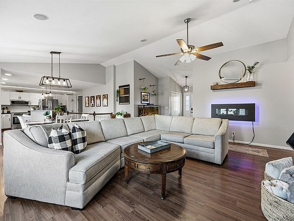 This stunning ranch-style home offers 3 bedrooms and 2 full baths on the main level, featuring modern updates throughout. Enjoy open-concept living with a built-in speaker system on the first floor, perfect for entertaining or relaxing. Step outside to unwind in the private backyard with a hot tub, no rear neighbors, as the property backs up to a church for added privacy. The finished basement expands your living space with a custom theater room, 2 additional bedrooms, a full bathroom, plus a hidden gaming room. Ideal for guests or a home office setup. An extra concrete slab beside the garage provides additional parking. Located within walking distance of Novak Elementary, this home perfectly blends comfort, convenience, and privacy.