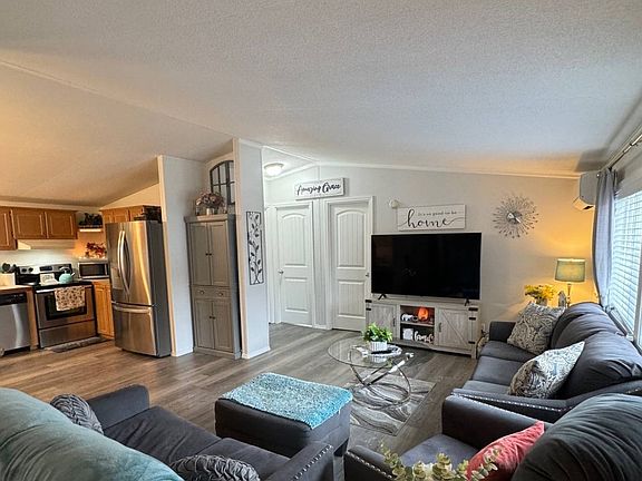 Wonderfully maintained quaint home in The Meadows on Pitney Pond. An all-aged community with space rent of roughly $750. The Meadow has a playground, an outdoor court, RV/Boat storage and trails around Pitney Pond! The home has been updated with newer updates stainless steel kitchen appliances, updated bathrooms, vinyl plank flooring throughout the home for easy maintenance. Landscaped front yard and, backyard that is partially fenced.