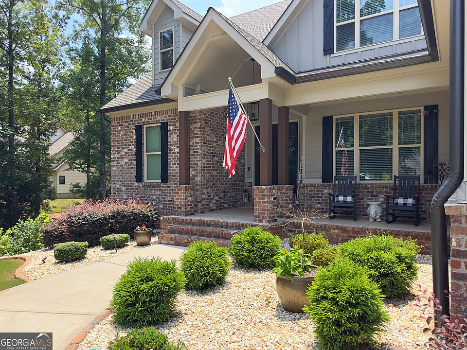 Welcome to your dream home at 310 Preakness Way, a stunning residence nestled in the serene and sought-after Riata community of Forsyth, Georgia. This exquisite home blends modern elegance with Southern charm, offering a perfect retreat for families, professionals, or anyone seeking a peaceful lifestyle with convenient access to urban amenities. Spanning 3000 sq ft with an additional 2054 sq ft unfinished basement, the home features 4 bedrooms and 3.5 bathrooms with bonus room, providing ample space for comfortable living and entertaining. The gourmet kitchen, the heart of the home, boasts quartz countertops, stainless steel appliances, a large center island, and custom cabinetry, making it ideal for culinary enthusiasts and family gatherings. Appliances include double wall oven, built in stove top, built in microwave, and dishwwasher. The bright and airy living area, with high ceilings, hardwood floors, and large windows, flows seamlessly into the dining space, creating an inviting atmosphere filled with natural light. Off of the dining room there is a covered porch which has a fireplace as the focal point overlooking the well maintained back yard with fire pit area and sprinkler system. This space offers a perfect setting for barbecues and relaxation. The primary suite offers a beautiful space for peaceful sleeping and complete relaxation in the primary bath that consists of double vanity, soaking tub and oversized tile shower. The primary large walk in closet has built ins for easy organization. On the second level you have two more nice sized secondary bedrooms and a large bonus room and a full bath. The unfinished basement offers space for anything you might want it to be. It is stubbed for an additional bathroom. Walking outside from the basement, you will enjoy another covered patio space. Located in a family-friendly neighborhood, the home provides access to a community pool and playground. Situated just minutes from downtown Forsyth, top-rated schools, shopping, dining, and major highways like I-75, this home ensures easy commutes to Macon and Atlanta.