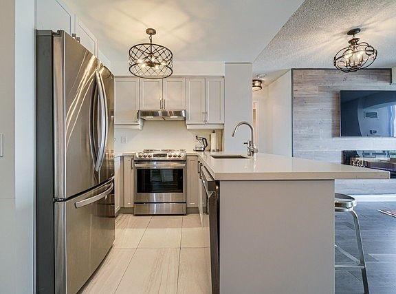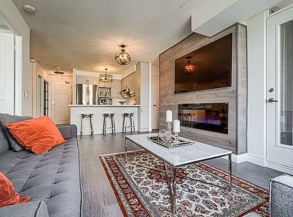 Breathtaking Modern Spacious Luxury Condo At Vineyards Gated Community. Recent Full Reno: S/S Apls Hardwood Eng. Flooring Continental Fireplace W Custom Feature Wall Riobel Faucets Custom Kitchen W Quartz Counter Top Anatolia Tiles High End Led Fixtures. Custom: Sheer Drapes Vanity Glass Shower Railing Mirror Paint & Closets. Amenities: Pool Gym Tennis Court Party/Rec Room Outdoor Terrace 24/7 Gate House. Minutes To Go Train, Transit, Mall & Grocery Stores.