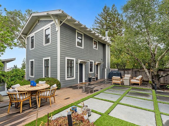 This light-filled 3 bedroom 2.5 bath home sits in one of Corte Madera's most desirable neighborhoods and offers a brief walk to all that downtown Corte Madera has to offer. Inside, you'll find wood floors, high ceilings, and a comfortable living room with a bay window and limestone faced wood burning fireplace. The remodeled kitchen opens to a dining area that is well suited for gatherings, and one of the bathrooms has been recently updated. Additional details include two zone air conditioning, stackable washer and dryer, and partial Bay views. Outdoors, the private yard has been professionally designed for low maintenance with room to relax, entertain, and enjoy indoor outdoor living. There is a storage shed plus two off street parking spaces. The home is within walking distance of top rated schools, hiking trails, dining, and shopping, an excellent spot to experience the best of Marin living.