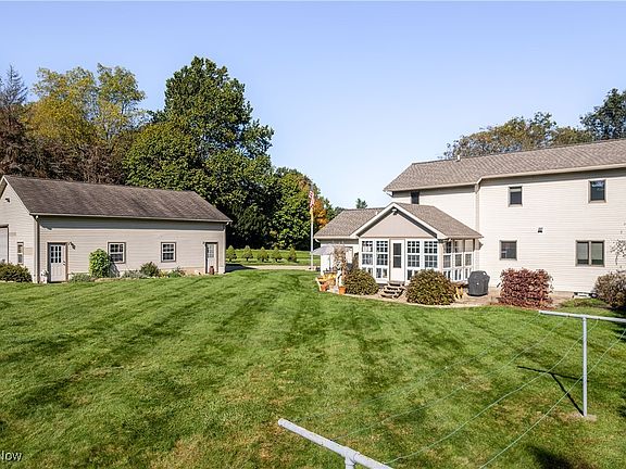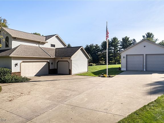 Welcome to this stunning custom-built home in Wadsworth Township, offering 4 BR's, 3BA's, with 3 attached garage spaces. Built by Kevin SirLouis, this home sits on 2 picturesque acres in the Wadsworth CSD with no city taxes, and livestock is permitted. With 2,351 square feet of finished living space and the potential for an additional 1,100 square feet in the basement, this property offers both comfort and versatility. Quality craftsmanship is evident throughout, featuring Anderson windows, a 2023 roof with gutter and leaf guards, a 2022 AC unit, and a 2023 HWT. As you step inside, a welcoming foyer leads to a spacious great room with a vaulted ceiling, loft, bay window, and a cozy gas fireplace. Adjacent to the great room is the dining room with french doors and kitchen that boasts real hickory hardwood floors, quartz countertops, pull-out pantries, and a reverse osmosis water system. The refrigerator, range, and dishwasher are included. Just off the kitchen, a beautiful 3-season room with a cathedral ceiling and abundant natural light offers the perfect spot to relax. The windows open from the top or bottom, allowing for customizable airflow. Upstairs, 3 spacious bedrooms include a luxurious owner’s suite with a vaulted ceiling, an ensuite bath with a jetted soaking tub, a separate shower, a double vanity, and a large walk-in closet. A potential 4th bedroom is located off the kitchen, providing flexibility for a home office or guest room. This property is a nature lover’s dream, featuring a peach tree, raspberries, strawberries, and 2 walnut trees. A large fenced-in garden, a picnic table, and paver patio create the perfect outdoor retreat. The chicken coop is shaded with morning glories, adding to the charm. For additional storage or workspace, a 39’ x 27’ outbuilding with 10-foot doors and electric openers is ready to accommodate your needs. A 25-foot flagpole stands proudly between the home and the outbuilding, completing this incredible property.