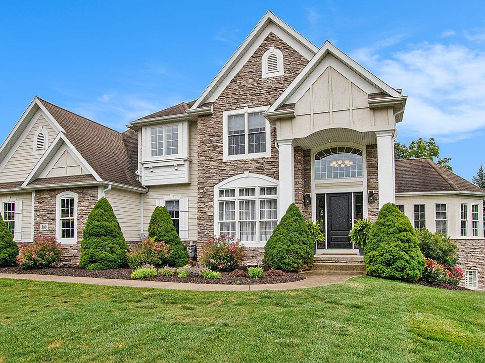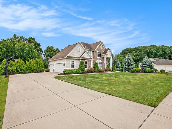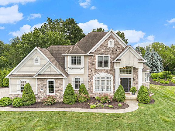 Welcome to The Oaks! Sought after neighborhood, located in the St. Joseph School District. Expansive custom built 4 bed/ 3.5 bath, large office space with built-ins, and non- conforming bedroom in basement, complete with top-of-the-line finishes. Kitchen boats high-end appliances, quartz counters, eat in breakfast nook, onlooking the open concept living. Custom double-sided fireplace between the living room and den gives the perfect separation of the two spaces. Large windows throughout offer an abundance of natural light beaming through this home. Finished daylight basement offers media room for the perfect movie night. Take advantage of this one-of- a-kind gym, with large glass windows and custom-built doors to fit. This home offers it all from outside entertaining spaces to the inside.