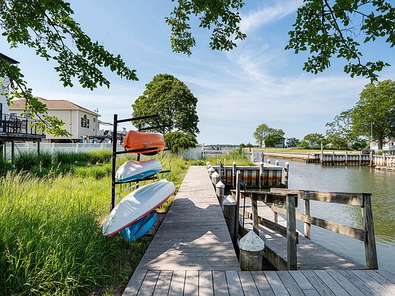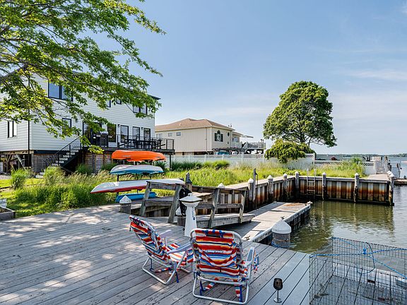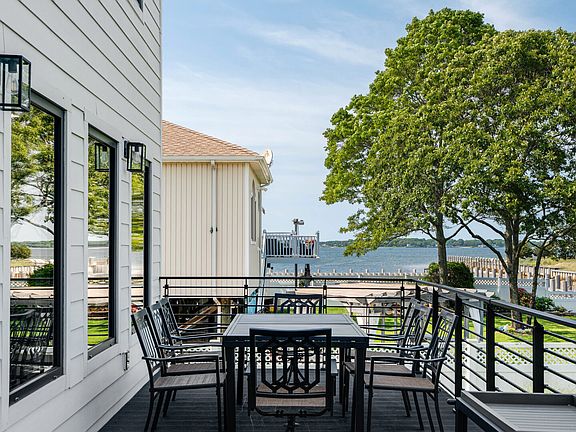 Designed with sleek contemporary aesthetics and coastal charm, this sophisticated property features an open-concept layout, an abundance of natural light, and stunning water views. With four bedrooms and three bathrooms, it is ideally suited for families or groups looking to escape the ordinary. Just a short distance from the heart of Flanders, as well as nearby beaches, parks, and charming town shops, this exceptional home provides an ideal balance of seclusion and convenience.The exterior of the property is equally inviting, with a spacious deck that overlooks the bay, providing a serene spot to unwind. The deck features ample lounge seating, ideal for enjoying morning coffee or evening cocktails while taking in the peaceful water views. A private dock with water and electric access allows for seamless boating experiences, perfect for launching one of the provided kayaks or simply enjoying the gentle lapping of the water. An outdoor dining area with a gas BBQ makes al fresco dining effortless, whether hosting a family dinner or enjoying a quiet meal at sunset. After a day spent exploring the waters or local beaches, the outdoor shower with hot water provides a refreshing way to wash away the day's adventures.Upon entering the home, guests are greeted by a modern open floor plan, where the bright, airy atmosphere is enhanced by surrounding windows that frame the water views. The chef's kitchen is a focal point of the home, featuring high-end appliances, sleek cabinetry, and a generous central island that serves as the perfect gathering spot. It is fully equipped to meet the needs of those who enjoy preparing meals in style. Adjacent to the kitchen, the living and dining areas offer a relaxed yet sophisticated space to entertain, with the water views acting as a natural backdrop. For entertainment, a media den features a foosball table and a cozy lounge area, while an exercise room equipped with weights allows guests to maintain their fitness routines. The home also features a laptop-friendly workspace and reliable WiFi throughout.Additionally, a convenient laundry room is located on the second floor.The home's four bedrooms are thoughtfully appointed to provide the utmost comfort. Each space is stocked with fresh linens, plush bedding, and serene decor. On the main floor, a guest room offers a quiet retreat with easy access to the rest of the home. Upstairs, the primary suite features a king-sized bed and ensuite bathroom. The luxurious bathroom includes a walk-in shower, double vanity, and a soaking tub that overlooks the water, creating a spa-like experience. One additional guest room, with a queen bed, offers ample space and comfort, while a third room, also upstairs, is ideal for children or families, featuring twin bunk beds and an additional trundle bed. A second full bathroom upstairs includes a tub, shower, and double vanity, while a third full bathroom on the main floor offers a spacious walk-in shower.Located just minutes from Flanders' local amenities, this home offers easy access to a variety of attractions. Nearby, guests can enjoy pristine beaches, scenic parks, local vineyards, and farm-to-table dining experiences. Art galleries, boutique shops, and farmers markets add to the area's charm, while renowned golf courses are also within close proximity. Whether exploring by foot or bike, guests will appreciate the ease of access to the best of the region.This waterfront retreat is designed to offer a sophisticated escape, where every detail has been carefully considered to ensure comfort, relaxation, and enjoyment. Whether you're seeking a quiet respite or a base for exploration, this property promises an unparalleled experience in one of Long Island's most desirable locales.