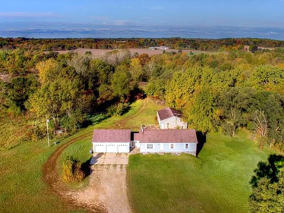 hat a great find...this BEAUTIFUL 5 bedroom ranch style home is situated on a gorgeous 10 acre parcel with rolling hills, some heavy woods & HUGE yard! It includes a nice 40' x 30' pole building for all of your outdoor pleasures, including a workshop area that is separated off from the rest of the barn. The home features stone fireplace, 3 car attached garage, 5 bedrooms, 2 full baths, very nice kitchen with all appliances, a great lower level finished area with its own bar & 3 doors that walk out to the beautiful yard awaiting all of your family fun!! This is a gorgeous country setting & offers a long driveway that feels very private yet its easy to access the local towns only minutes away! The home was built in 1992 & offers central air, new carpets, and tons of room inside and out!! The home is much larger than it appears from the road, and has a very nice lower level entertainment area (in part of the walkout basement) , along with a big deck on the back! VERY motivated sellers