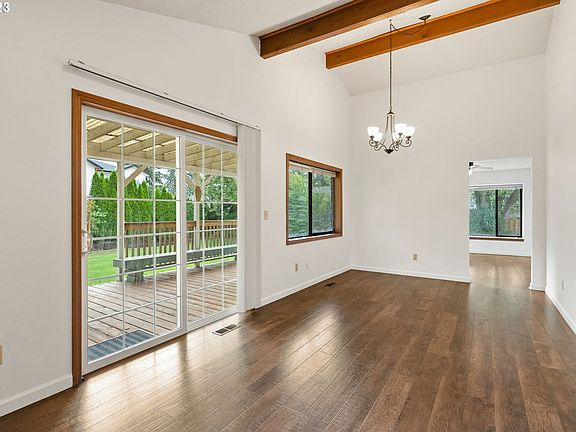 WELCOME HOME to this fabulous 'move in ready' single level home in one of Canby's most desirable locations! 3 spacious bedrooms, 2 full bathrooms, 2 car garage, large covered RV or Boat parking/storage, and appliances included too! Vaulted ceilings, BEAUTIFUL BEAMS, skylight and lots of windows make this home feel light and open-not to mention the covered deck, PLUS another deck with gas line for the BBQ- ready for your outdoor fun! New exterior paint 2021, new garage doors 2020, newer gorgeous laminate floors in 2020, ring doorbell, and fresh interior paint 8/23. Open kitchen featuring vaulted ceilings, skylight, laminate flooring, island, and sizable pantry. Spacious primary suite with walk in closet and bath. Fenced yard, dog run, charming patio area, and covered patio for year-round enjoyment.