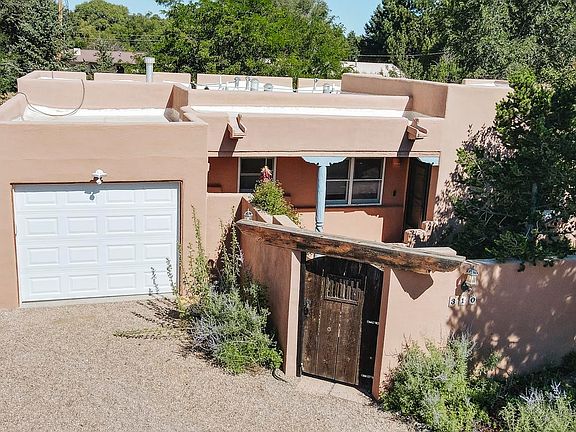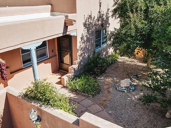 YOUR PICTURE PERFECT TAOS DREAM HOME delivers ultimate comfort with air conditioning and an unbeatable location steps from everything. Discover the enchanting world of Taos with this gorgeous, move-in ready 3-bedroom, 2-bath Pueblo-style home. Fully fenced with a one-car attached garage, this 1462 sq ft residence welcomes you through a beautifully manicured outdoor courtyard with a fountain, immediately setting a serene tone. The well-thought-out open floor plan creates a spacious and inviting atmosphere, perfect for both daily living and entertaining. The kitchen, truly the heart of the house, boasts new upscale appliances, ample counter space for cooking, countertop for casual dining and plenty of storage. The spacious dining/living room extends seamlessly outdoors to a lovely patio—ideal for morning coffee or evening relaxation or entertaining. A large primary bedroom with an attached bathroom opens directly to a hot tub and a stunning landscaped back patio. Two additional bedrooms offer versatile spaces for guests or a dedicated studio. Enjoy the warmth and beauty of tile floors throughout, complemented by a charming Southwestern fireplace, tongue & groove and Viga ceilings that add character and charm. Comfort is paramount with radiant floor heat keeping you warm on chilly evenings, and efficient mini-splits providing year-round climate control. The attached garage has custom shelving and lots of storage. Additionally there is an adorable green shed perfect for additional storage or whatever your needs are. This home comes with the convenience of town water, sewer, and natural gas. Beyond the flagstone patio, you'll find a meticulously landscaped and treed backyard with a chicken coop and plenty of space for outdoor dining. There are prolific pear trees, a magical quartz fountain and many outside areas to lounge, lunch or meditate. Live in a community where local treasures are just steps away, and the vibrant culture of Taos, including fabulous cafes, new and vibrant restaurants, and the lively Taos Plaza, is at your footsteps.