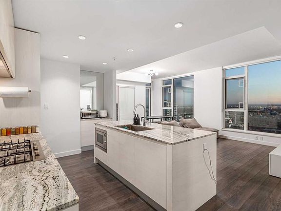 Perched on the 30th floor of the prestigious Park Point building, this stunning corner end unit offers an exceptional blend of luxury, sophistication, and urban convenience in the heart of Calgary’s vibrant Beltline. With soaring 9' ceilings, this thoughtfully designed residence features 2 bedrooms, a versatile office/den, and 2 full bathrooms, creating a perfect balance of style and functionality. Floor-to-ceiling windows flood the space with natural light, showcasing breathtaking panoramic views of downtown Calgary, Central Memorial Park, and the majestic Rocky Mountains. The open-concept design enhances the spacious feel, making it ideal for both relaxing and entertaining. At the heart of the home, the Italian-designed Armony Cucine kitchen is a masterpiece of form and function, featuring full-height cabinetry with soft-close drawers, under-cabinet lighting, premium stainless steel appliances including a gas cooktop, real granite countertops and backsplash, and high-end Hansgrohe fixtures. The expansive island with a breakfast bar provides additional prep space, while a dedicated coffee/beverage station adds a touch of everyday luxury. The living and dining areas offer an inviting ambiance with south-facing views, creating the perfect setting for unwinding or hosting guests. The den/office is surrounded by large windows, provides an inspiring workspace with incredible unobstructed views of the downtown skyline and the Rocky Mountains—a rare feature that elevates both productivity and relaxation. The primary suite is a private retreat, featuring a walk-through closet leading to a spa-inspired 5-piece ensuite with a soaker tub, dual sinks, and an oversized glass-enclosed shower. The second bedroom offers additional comfort with expansive city views and ample storage space, while the 4-piece guest bath includes an oversized shower. Completing the home is a full-size in-suite laundry and air conditioning, ensuring comfort and convenience year-round. This unit comes with underground parking and storage locker for added convenience. The pet-friendly Park Point building offers world-class amenities, including a fully equipped fitness center, Yoga studio, sauna and steam room, resident’s lounge, party room, outdoor courtyard with a BBQ station, and a car/pet wash bay. Ideally located in the heart of the Beltline, Park Point provides unmatched walkability with Central Memorial Park and the Memorial Park Library right across the street, Haultain Park and its tennis courts just steps away, and an array of top-rated restaurants and cafés nearby. The shopping, entertainment, and nightlife of 17th Avenue are minutes away, while the Saddledome and Stampede Park offer year-round events and sports. For those who work downtown, the +15 entrance is just one block away, ensuring seamless connectivity. This meticulously crafted residence delivers the ultimate urban lifestyle with unparalleled views, premium finishes, and top-tier amenities. Don’t miss this opportunity!