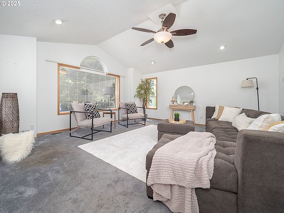 Charming Dundee home in the heart of wine country! Step inside to a welcoming living room with vaulted ceilings and a large window, letting in ample natural light. Hardwood floors flow through the entryway, dining room, and kitchen. The family room opens to a covered patio and private backyard, perfect for summer evenings or cozy gatherings. A spacious shed adds flexibility for storage or even a creative hangout space. The primary suite offers a surprisingly large walk-in closet and a bathroom with a walk-in shower. Two additional bedrooms provide great options, one with a built-in desk for work or study, and the other with an oversized closet for extra storage. Outside, you’ll love the large front porch, generous patio area, and fully fenced yard. Located on a quiet street, this home is just steps from Dundee-Billick Park, and just a short drive to renowned wineries, fine dining, and charming tasting rooms. Where small-town living meets the beauty of Oregon’s wine country.