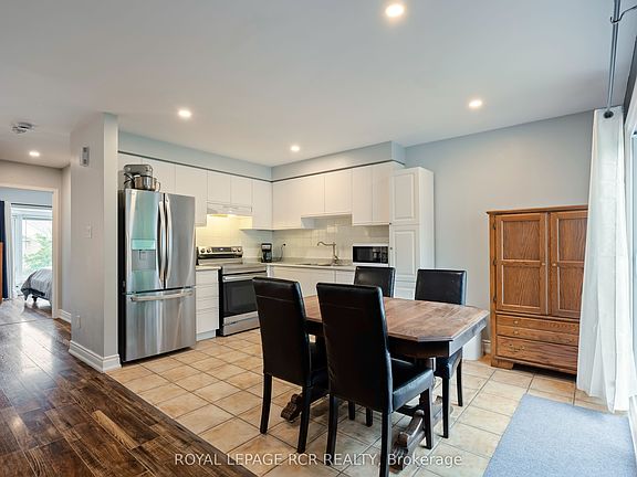 This affordable and well maintained 3-bedroom, 2-bath raised bungalow with garage offers the perfect blend of comfort, convenience, and modern updates all tucked away on a family-friendly cul-de-sac in the heart of Shelburne. The bright, open-concept main level features a welcoming living room with a cozy gas fireplace and an updated eat-in kitchen with ceramic flooring, brand-new fridge & stove, and a walkout to a newly built deck ideal for morning coffee or hosting gatherings. Both bathrooms have been stylishly renovated for a fresh, modern feel. The finished lower level adds even more living space, complete with two additional bedrooms featuring above-grade windows, a 3-piece bath, and a convenient laundry closet perfect for family, guests, or a home office. Additional highlights include inside garage access, no sidewalk (allowing for extra parking), and a fully fenced backyard designed for kids, pets, and entertaining. Located within walking distance to parks, the splash pad, rec centre, schools, and downtown shopping, this move-in-ready home truly checks all the boxes! Average Winter Monthly Utility Costs: Hydro $215, Gas $65 (Gas Fireplace used mainly for upper level heating, baseboards for lower level heating).