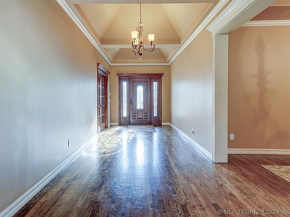 Custom built, one level, close to Creek Turnpike. Amazing finishes, wood floors, media room, in-ground gunite pool w/ spa. 1/2 acre with greenbelt. Privacy, location, quality- this home has it all!