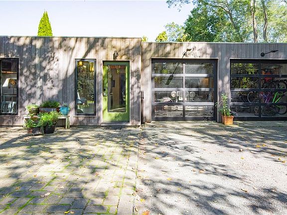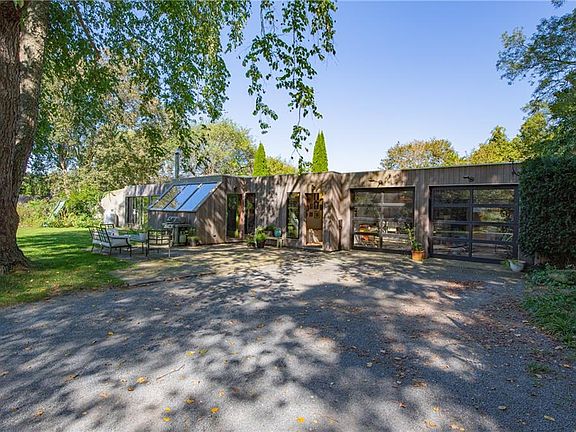 A distinctly unique property with energy efficient design, the main house is post and beam construction and earth sheltered on three sides with new passive solar windows, and new doors/garage doors spanning the south side of the house. Four skylights adorn the roof for additional light. Open concept floor plan with remodeled kitchen/stainless appliances. The primary bedroom is ensuite with a walk-in closet. Two car garage. Added to the property in 2016, a 900 sq ft garage/studio with hydronic radiant heat, second floor living space and bath. Beautiful grounds with mature trees, outcroppings all set on 1 1/2 acres. Secluded yet minutes to the Middletown beaches, Sachuest Point, Sweet Berry Farm and across from the Norman Bird Sanctury.