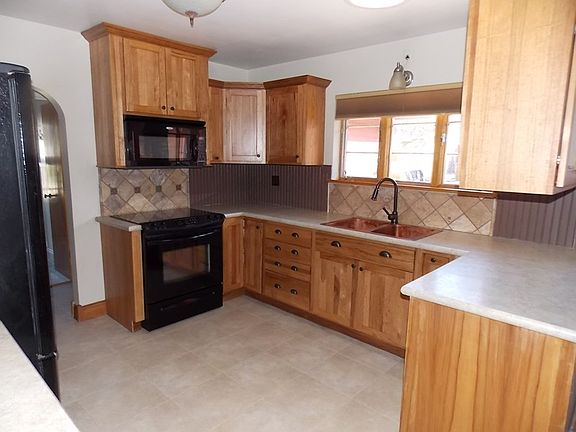 Only minutes from town on a large lot is a beautiful home waiting for you! Hickory cabinets in the kitchen, copper sink and beautiful counter tops. There is an eating area in the kitchen plus a formal dining room with original hardwood floors. The living room has a gas fireplace. Nice wide stairs go to the basement where there is a cozy den with electric fireplace, a work room and a bathroom. Furnace is only 1 year old and the water heater is 2 months old. The 2 car attached garage was added in 2007 and the old garage converted into a work area and large cold storage area. There is an orchard with plum trees, pear trees, and raspberries and a concrete patio. There is also a private back yard.